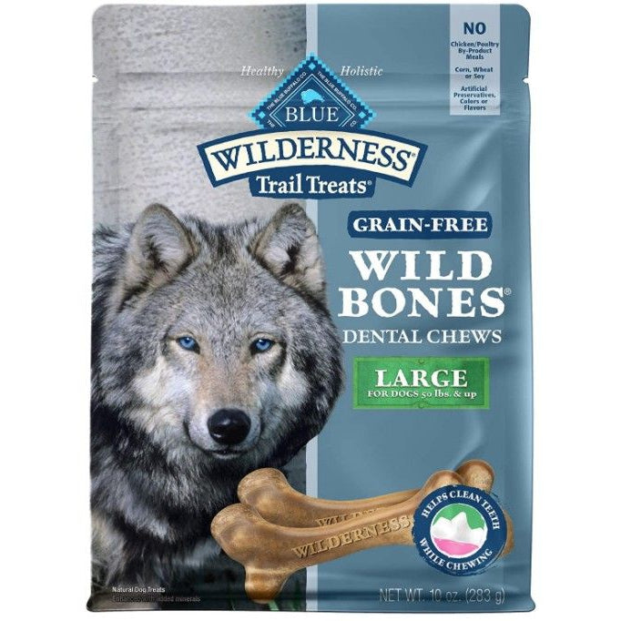 - CLEANS TEETH & FRESHENS BREATH: BLUE Wilderness Wild Bones are the grain free dental chews that help keep their canines clean and breath fresh