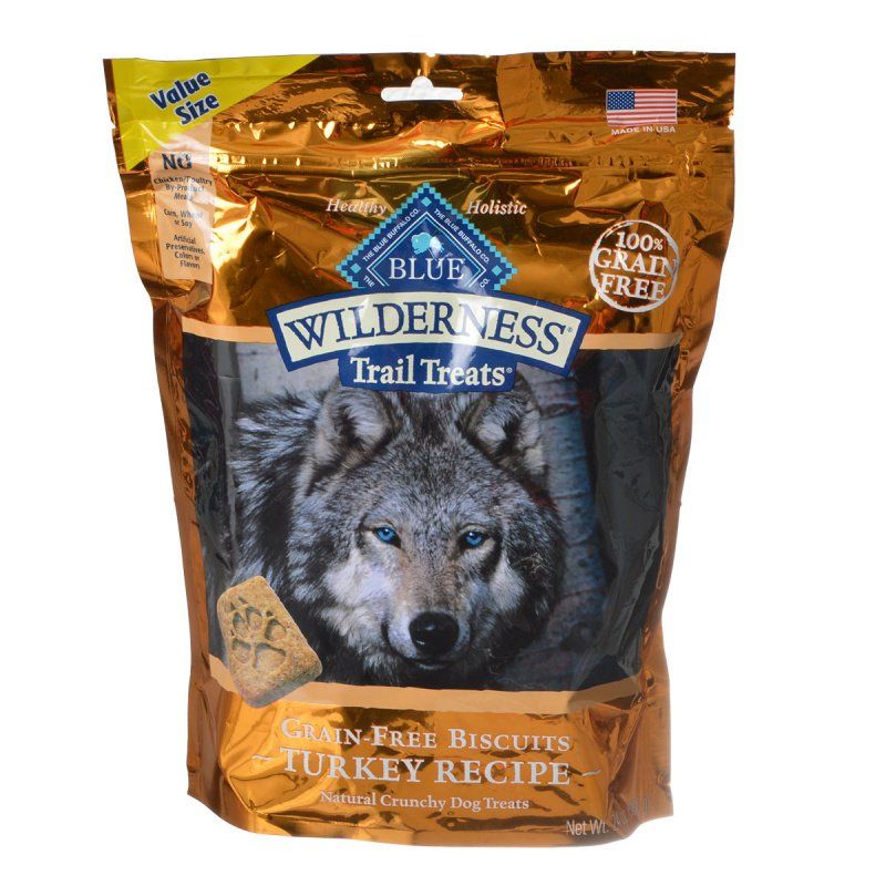 Blue Buffalo Wilderness Dog Biscuits are natural, crunchy treats formulated to indulge your dogs wild side. Made with real turkey and the finest natural ingredients, these snacks are high in protein and 100% grain-free.