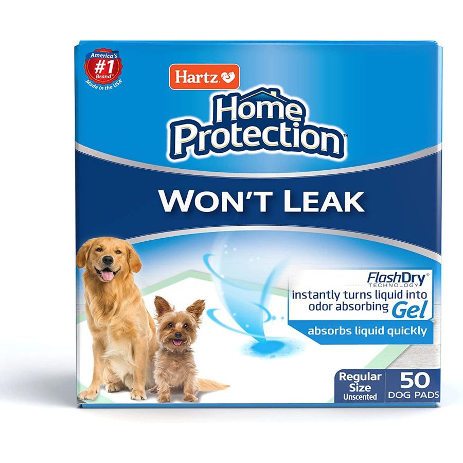 Hartz Home Protection Dog Pads are the ultimate absorbent pads to soak up your dogs messes before they spread. With advanced FlashDry technology, the pad instantly turns urine into a harmless gel that will not leak or spread. When it comes to protecting your home, Hartz has you covered.