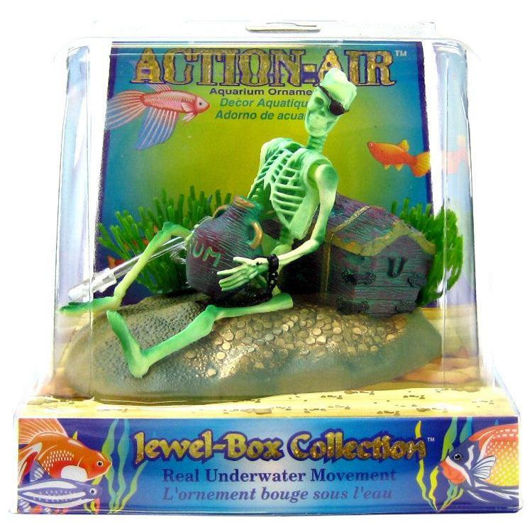 Penn Plax Action-Air Jewel Box Skeleton Ornament gives a new definition to sleeping with the fishes! This haunting reminder of the dangers of drinking rum at the bottom of the ocean while manacled is sure to turn your aquarium into a conversation starter.
