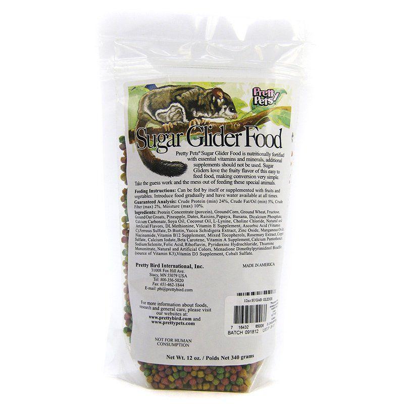 Pretty Pets Sugar Glider Food is nurtitionally fortified with essential vitamins and minerals, additional supplements should not be used. Sugar Gliders love the fruity flavor of this easy to feed food, making conversion very simple.