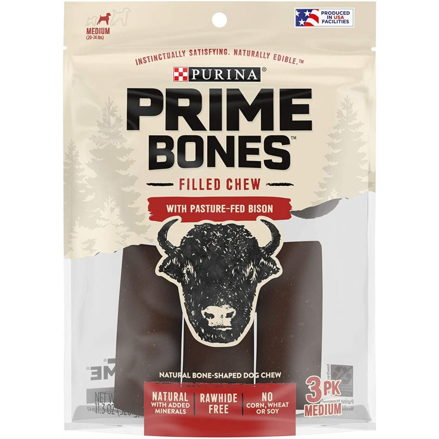 Purina Prime Bones Dog Chew Filled with Pasture-Fed Bison Medium
