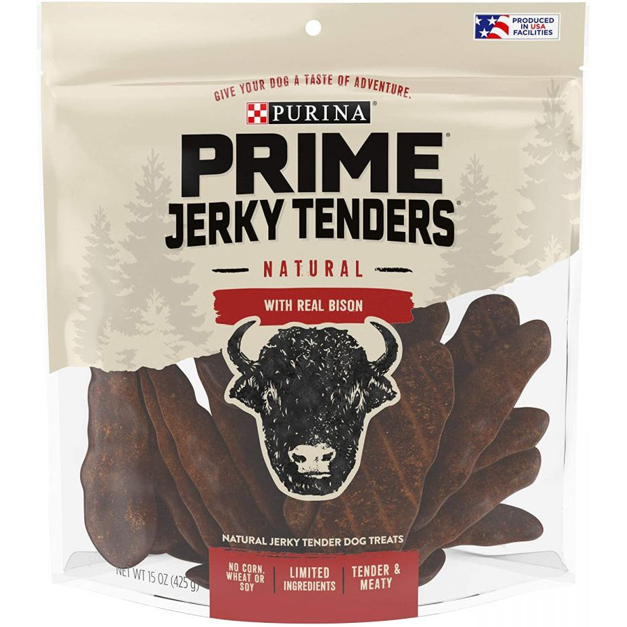 Answer your dogs call for adventure with Purina Prime Jerky Tenders With Real Bison Dog Treats. These simple, limited-ingredient, dog treats blend real bison with wholesome ingredients for a natural dog snack loaded with yummy flavor. With hearty, meaty goodness in every bite, these tender dog treats with real meat have the delicious taste and texture that dogs love.